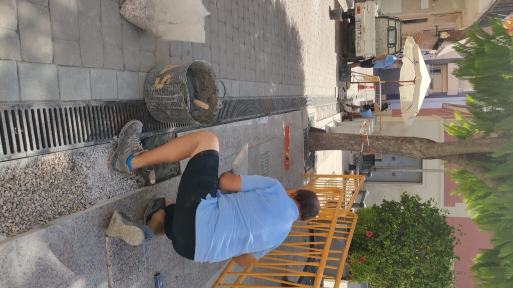Una vez extraídos los adoquines y granitos adyacentes a los imbornales, se procedió a la reposición del marco y sustitución del antiguo pavimento. En este sentido, cabe destacar que, para la realización de los trabajos se ha empleado granito rosa de exportación y adoquines fabricados con una piedra muy similar a la denominada “Piedra de El Campello”, un material que antiguamente se extraía de la cantera campellera situada en “Els Picalons” y que actualmente sólo se halla en las canteras de Novelda y sus inmediaciones.