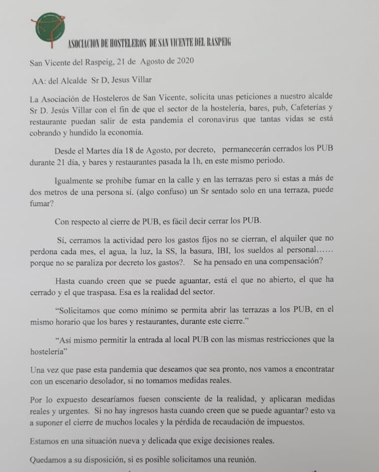 “Bueno amigos, como ya sabréis nos han vuelto a cerrar, tanto dentro como la terraza. He estado dos días intentando buscar una solución o que nos dejaran con sólo la terraza, pero nada, no hay manera. No puedo poner lo que pienso de políticos o funcionarios y técnicos municipales (de vacaciones con la que tenemos encima) porque más que cerrarme facebook me encerrarían a mí.