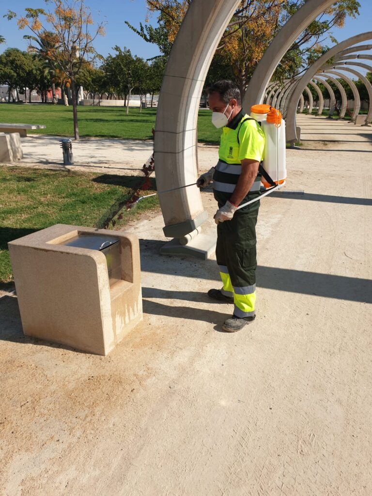 Las zonas de juegos infantiles verán incrementada su limpieza, así como todo el mobiliario urbano de alrededor como son bancos o papeleras, entre otros. En cuanto a los parques cerrados, Lo Torrent y Adolfo Suárez se están realizando desinfecciones con agua jabonosa.