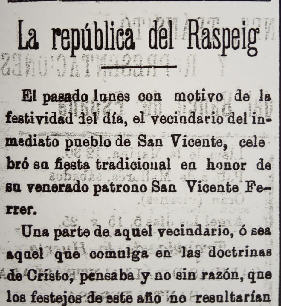 Asesinatos, crónica negra, accidentes, tiroteos, altercados, temporales, conflictos políticos en diversas etapas (republicanos, carlistas…), y hasta rivalidades entre las dos bandas de música, aparecen en este número. La prensa histórica llegó a calificar de costumbre “las notas negras de la celebración del Día del Patrón en San Vicente del Raspeig”.
