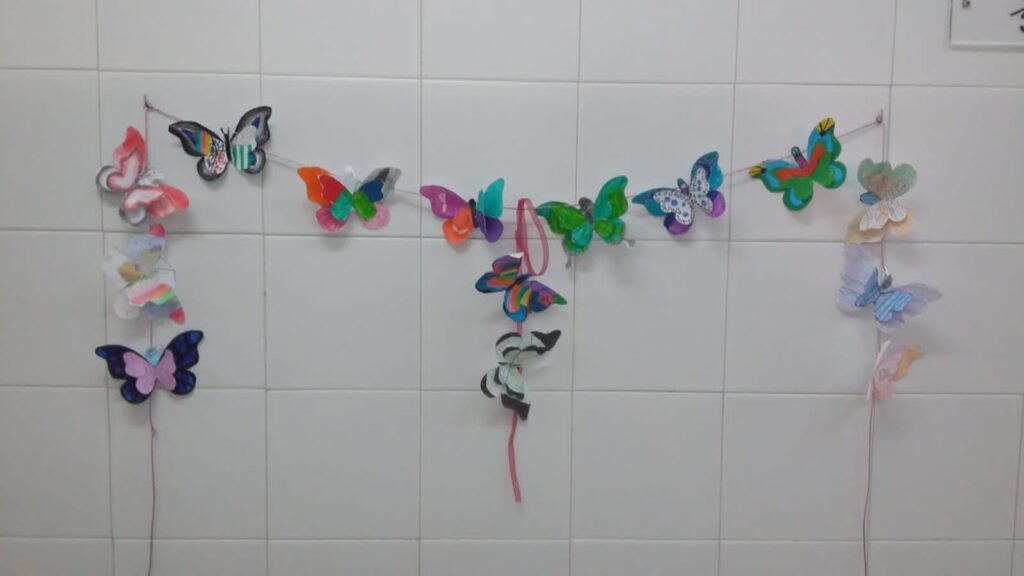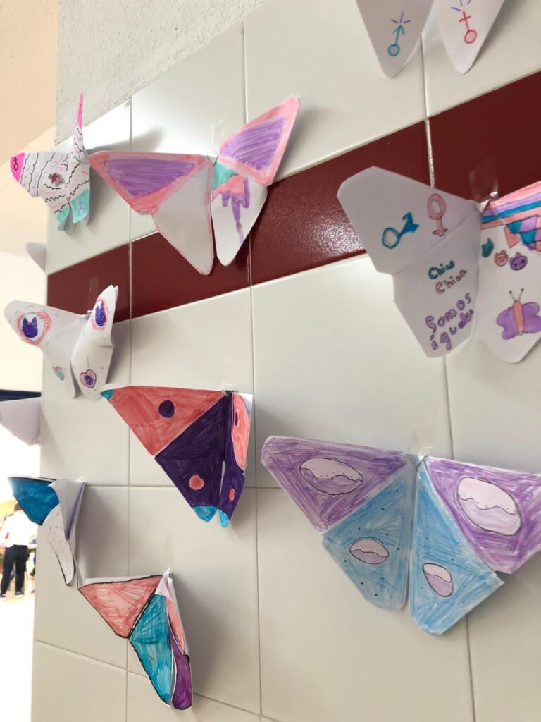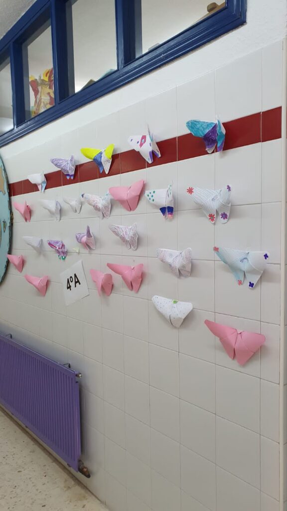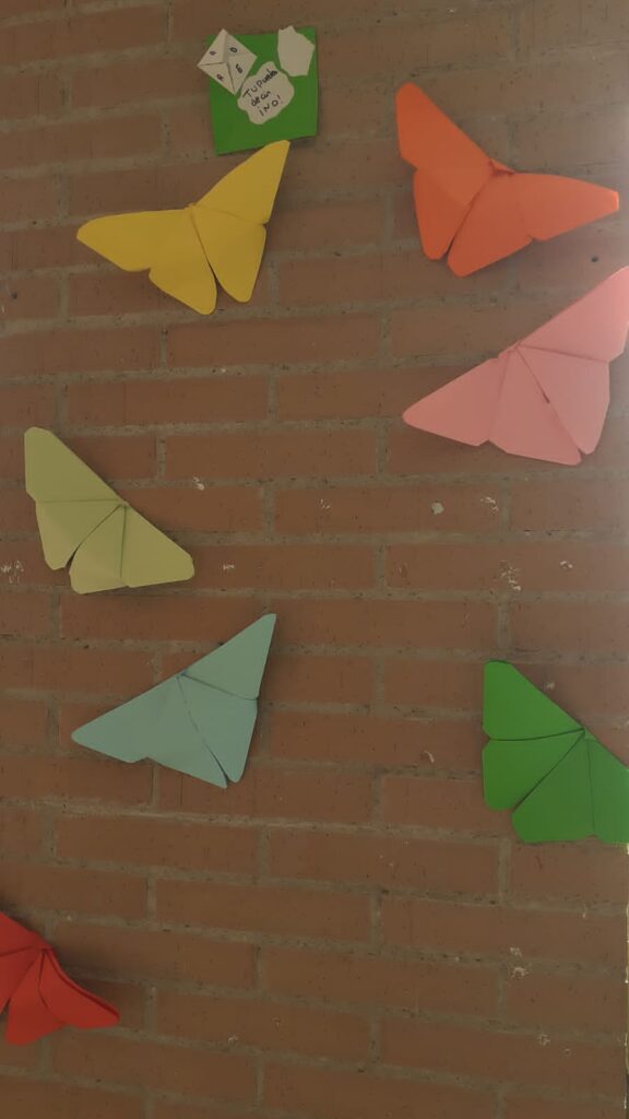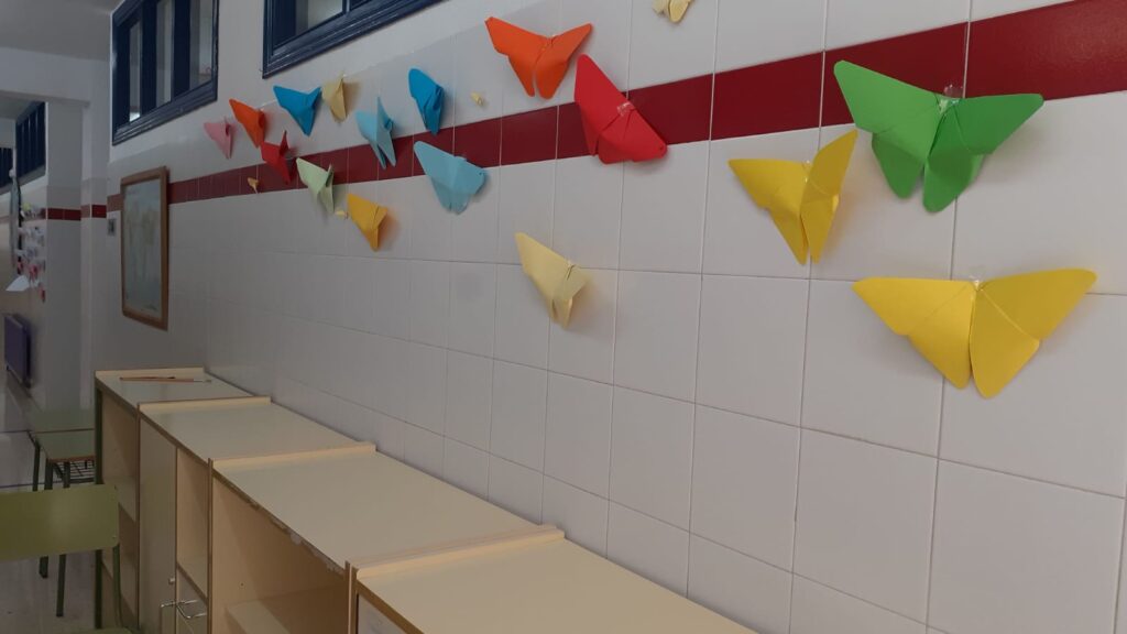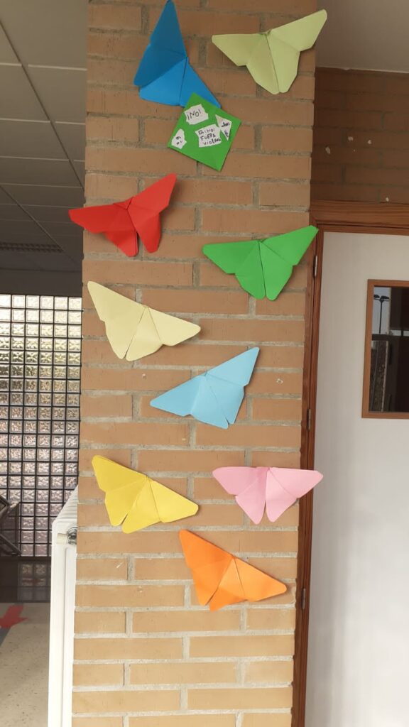 Se han preparado actividades en las aulas como cuentacuentos, canciones, visionado de videos, debates, juegos de rol… y han realizado actividades con el símbolo de la mariposa para decorar los pasillos así como aprender su significado.