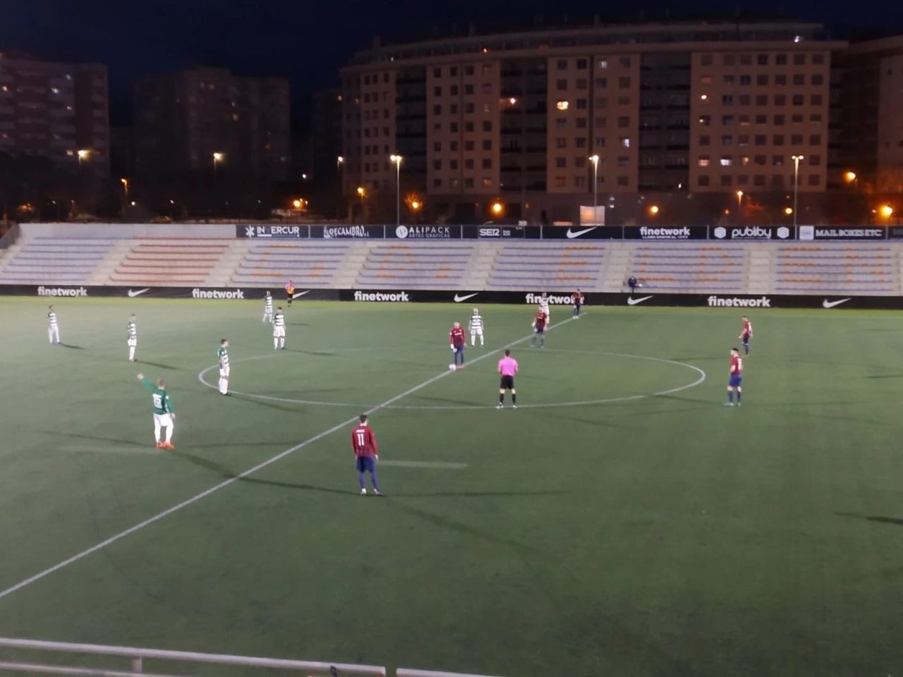 Así, con un 4-1-4-1 dispuso de Francesc en la portería, Joan y Juanma en los laterales y la pareja Pagán y el debutante Pepe como centrales. Álvaro Ivorra actuó como enganche, con Fede y Martínez Laguna por delante, dejando las bandas a Ferrán y Ángel Cobo. Por delante se bastó Abraham Gomis para pelearse en solitario con la experimentada defensa líder del campeonato.