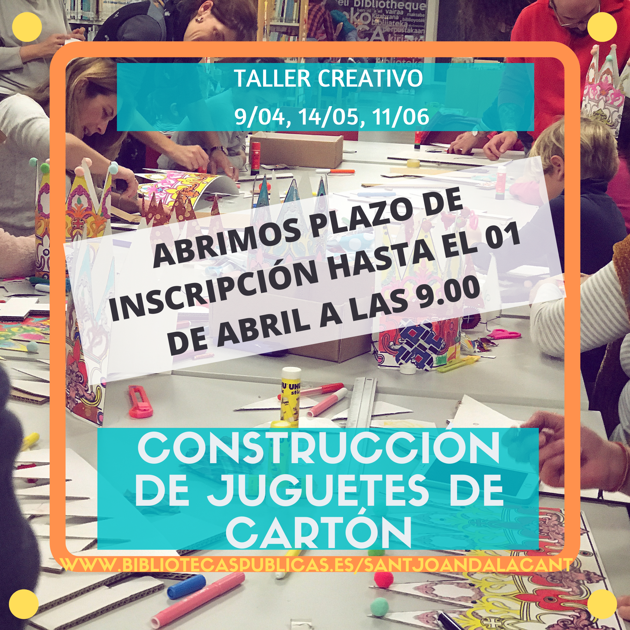 En la biblioteca de Sant Joan d’Alacant seguimos programando actividades dentro de nuestro proyecto de makerspace El LABoratori. Desde hoy está abierto el plazo para inscribirse en el taller familiar de creación «Juguetes de Cartón», a cargo de Karen Jaruffe de Cola de Raton Design. Esta actividad está dirigida a niñas y niños de entre 6 y 10 años acompañados de una persona adulta.