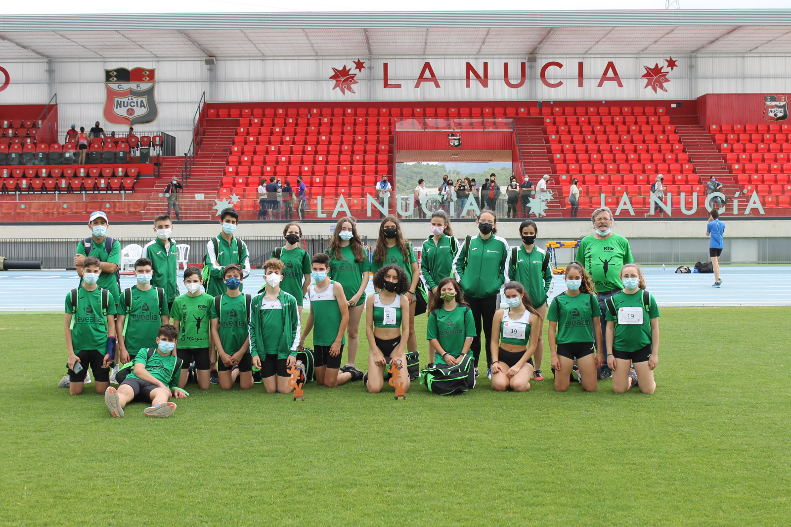 Para rematar el fin de semana, llegaba en turno de los cadetes tanto en categoría masculina como en femenina. Una amplia delegación de atletas se desplazó al Estadio Camilo Cano de La Nucía para competir en el Cto. Provincial de Clubes Sub16 JECV AL, con el objetivo de lograr uno de los tres puestos de honor. No lo tuvieron fácil, ya que en el transcurso de la competición estuvieron en dura pugna con equipos como el C.A. Sant Joan y el C.A. Torrevieja, y siempre oscilando entre la tercera y la quinta posición. Pero en el último arreón final, tanto chicos como chicas dieron todo lo que llevaban dentro y acabaron firmando sendos bronces en sus respectivas categorías.