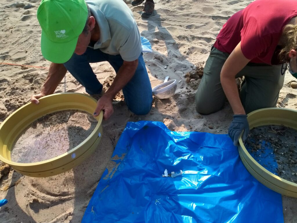 La actividad, que arrancaba a las 9.30h de la mañana de ayer, ponía en marcha el sistema de recogida de microplásticos en “metro cuadrado”, para estudiar y analizar la cantidad que se hallan en una superficie tan reducida y, “desgraciadamente los micro residuos encontrados en esa pequeña área han sido cientos”, ha explicado el primer teniente de alcalde, Julio Oca (Cs).