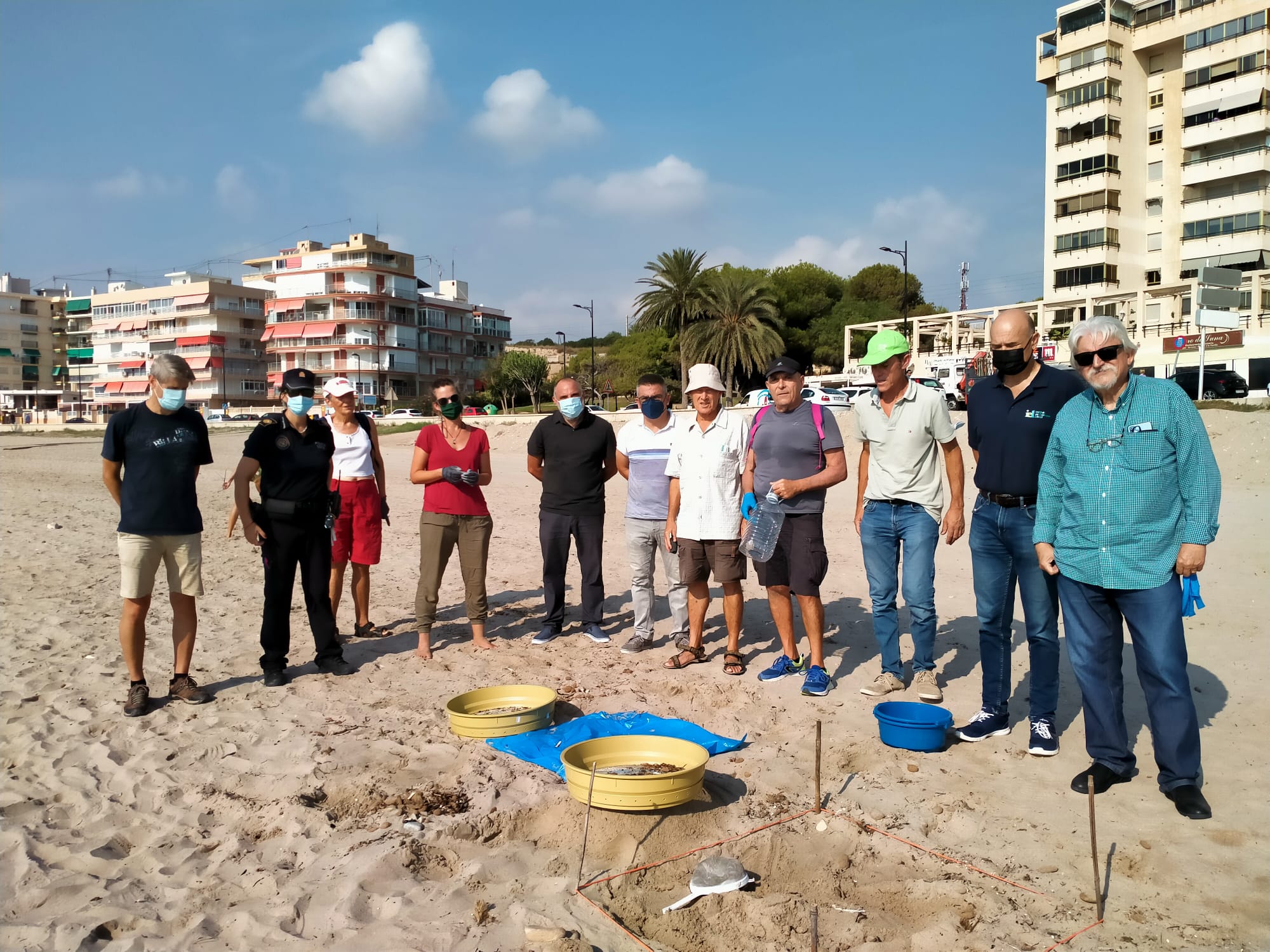 Personal de las concejalías de Playas y Medioambiente, del Instituto de Ecología Litoral (IEL), del departamento de Medioambiente de la Policía Local y el voluntariado medioambiental se ocuparon de la retirada de los residuos, durante las más de cuatro horas en las que se desarrolló la acción medioambiental, en la que además del cribado de la arena para la extracción de los microplásticos, hallaron cientos de colillas, pañales, compresas, latas de bebidas y botellas de plástico.