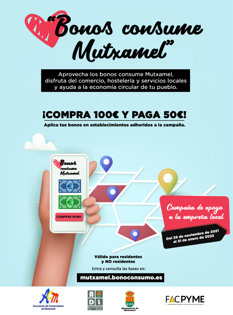 La campaña consiste en poner en circulación bonos para que los vecinos y visitantes que acudan a hacer sus compras en los comercios y establecimientos de Mutxamel puedan consumirlos. En palabras del alcalde, Sebastián Cañadas, «es algo que queríamos hacer desde hace tiempo pero ha sido difícil sacar adelante».