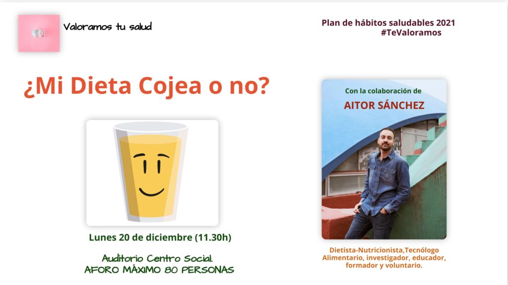 El acto forma parte del programa “Plan de hábitos saludables 2021”, diseñado para los trabajadores del Ayuntamiento, aunque en esta ocasión el acceso el libre al público en general. “¿Mi dieta cojea o no?” es el título de la actividad.
