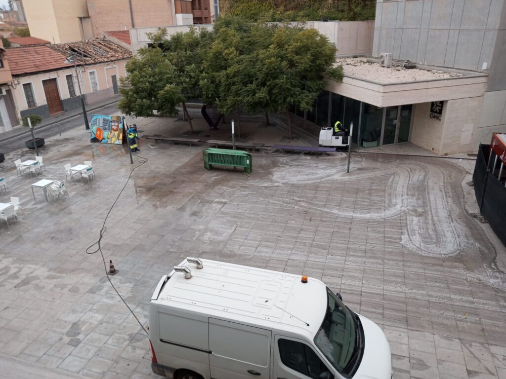 Por otro lado, los servicios extra de fregado de aceras también se ha realizado en las siguientes plazas del municipio: Plaza Herminia Amat; Plaza Santa Faz; Plaza Lillo Cánovas; Plaza Del Maestro; Plaza Comunidad Valenciana; Plaza De La Constitución; Plaza De España; Plaza Ascensión Guijarro; Plaza Del Pilar.