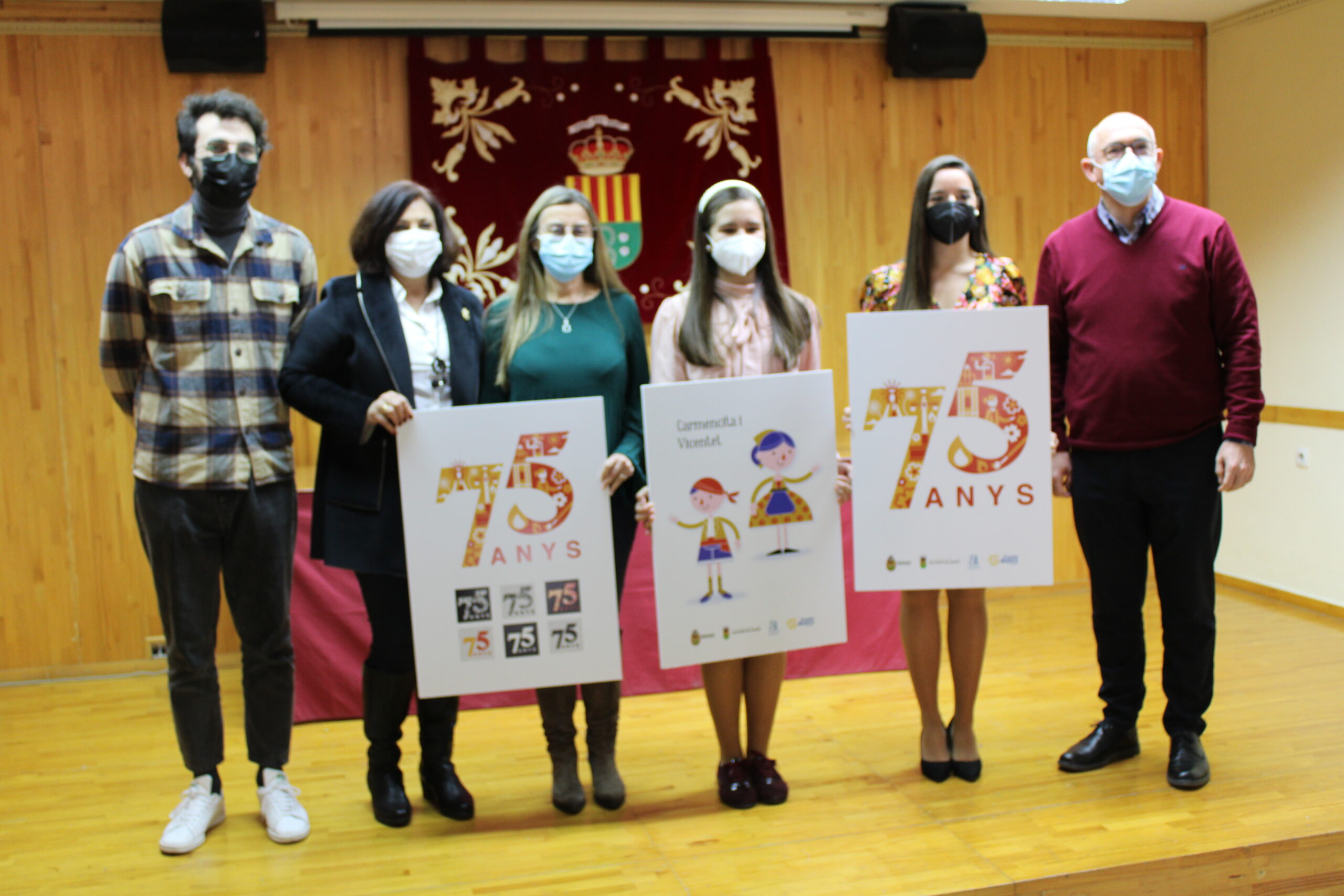«Es una sintesis de los elementos más representativos de la fiesta para que con un golpe de vista la gente que lo vea, vea la imagen del pueblo» ha comentado Alejandro sobre la imagen del 75 aniversario. Además, y como sorpresa, se han creado dos personajes, «Vicentet y carmencita» con la idea de que fuera algo didáctico y divertido.