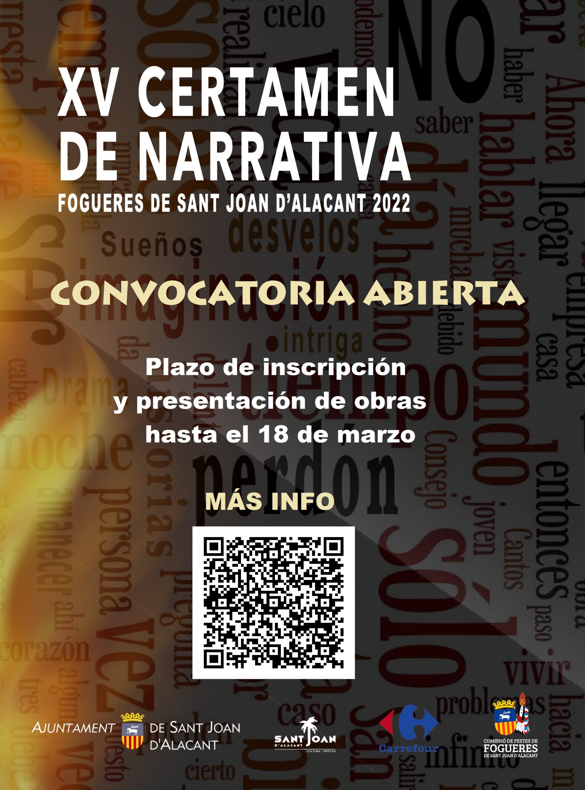 La obra ganadora tendrá un premio de 500 euros y el primer accésit de 150 euros. De nuevo se contará con el premio «Ninot Carrefour» patrocinado por Carrefour San Juan que se dará a los dos mejores relatos del alumnado de 5º y 6º de primaria y 1 ESO de los centros educativos del municipio, con una tablet de regalo para las dos mejores obras.