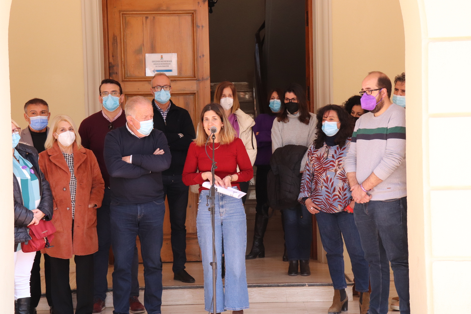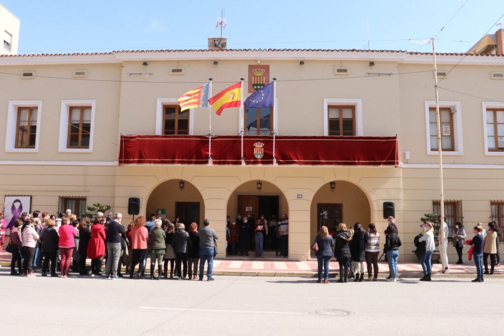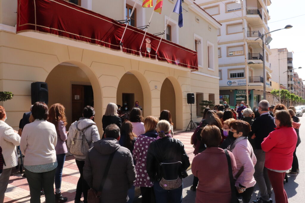 La puerta del Ayuntamiento de Mutxamel ha sido, un año más, el escenario escogido para la lectura de un manifiesto con motivo del Día Internacional de la Mujer. A las 12 horas de hoy, 8 de Marzo, ha tenido lugar una concentración abierta a la ciudadanía, en la que ha participado el colectivo laboral municipal. También han participado concejales de los grupos políticos PP, Cs, PSOE, Compromís y Podem, encabezados por el alcalde de Mutxamel, Sebastián Cañadas.