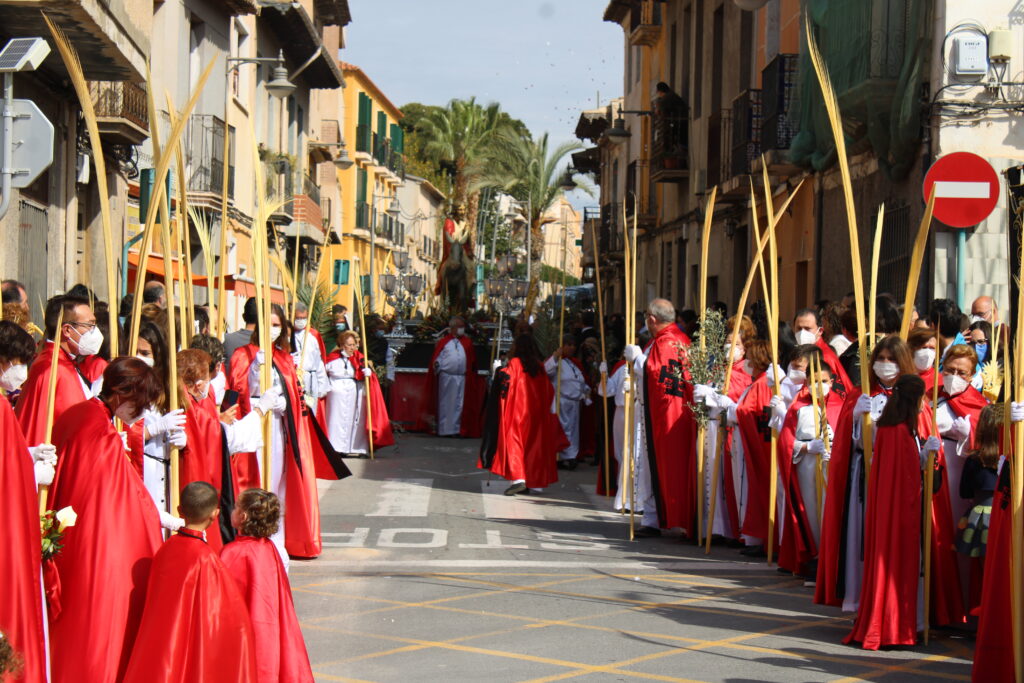 Comienza la Semana Santa en Mutxamel y lo hace con el domingo de Ramos. Tocaban las 11 en el reloj de la iglesia y se producía la bendición de las palmas por parte del párroco del municipio.