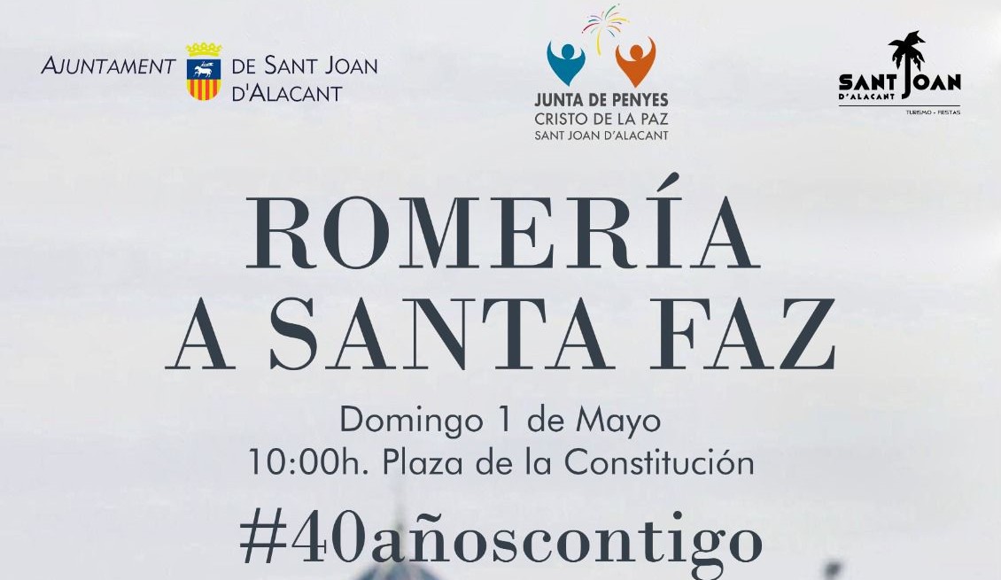 El próximo domingo 1 de mayo, desde la Plaza de la Constitución tendrá lugar la salida de la Romería a Santa Faz organizada por la Junta de Penyes Cristo de la Paz de Sant Joan.