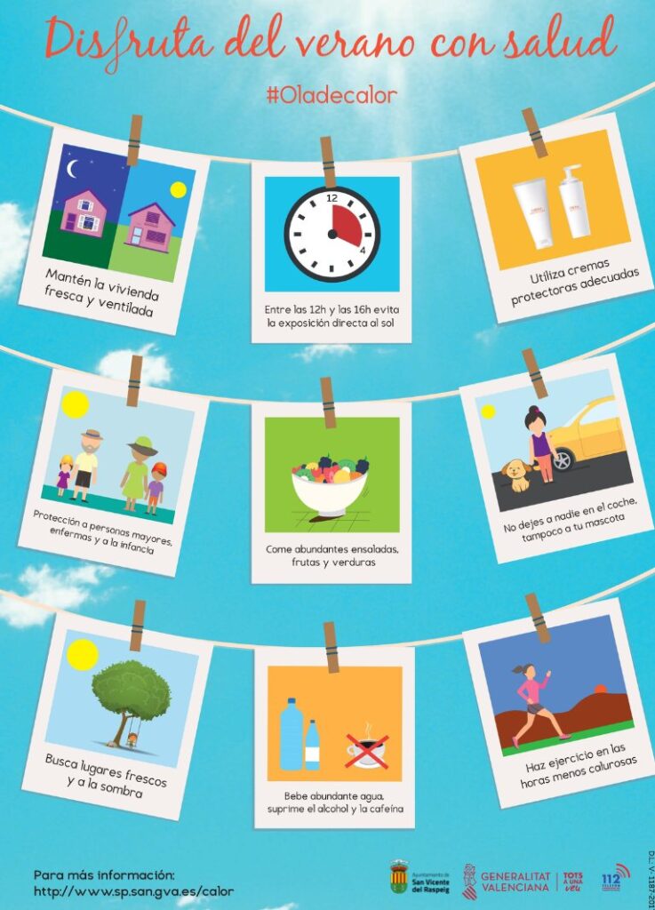 Cualquier incidencia significativa en relación con la “Ola de calor” deberá ser comunicada a este Centro de Salud Pública a través del teléfono 965 169 060. Para más información a través de la web de la Dirección General de Salud Pública www.sp.san.gva.es/calor.
