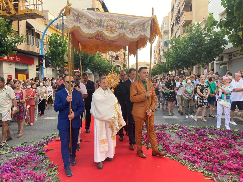 Con más de medio centenar de niñas y niños ataviados con sus trajes de Primera Comunión, cientos de feligreses, banda de música, una nutrida representación eclesiástica y las autoridades locales presididas por el alcalde Juanjo Berenguer, el domingo se celebró en El Campello una de las tradiciones más populares: la procesión del Corpus Christi.