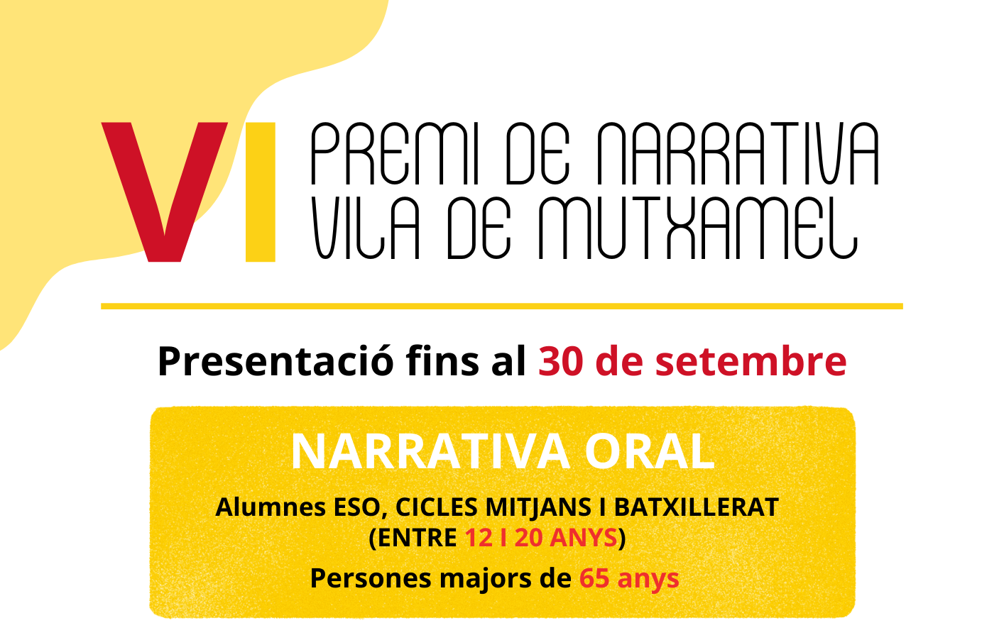 Se encuentra abierto el plazo para presentarse en el Certamen de narrativa ‘Vila de Mutxamel’ que este año tiene como única modalidad la de narrativa oral.