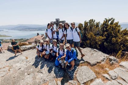 La estudiante sanvicentera vuelve esta semana de su viajem donde estuvo con los Reyes de la nación en la plaza del Obradoiro. También entre el resto de actividades conocieron a los vikingos, realizaron campamentos, coronaron el monte Santa Tecla, pasaron una noche en las islas Cíes conociendo las estrellas, descendieron el río Miño y se subieron a la mítica embarcación de Cristobal Colón, la Pinta.
