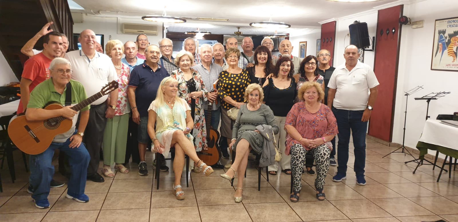 La «Sesentuna» está formada por personas de provecta edad que mantienen un repertorio de gran éxito. La fotografía muestra la alegría de todo el conjunto de asistentes. El socio de Almorçarets Sanvicenteros, Luis Germán Hernando, fue quien gestionó la celebración del evento además de ser uno de los integrantes de la “Sesentuna”. A este evento asistieron 28 personas.
