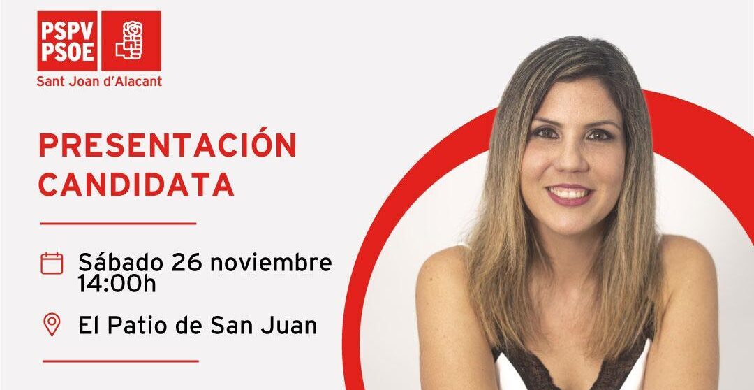 El próximo sábado 26 de noviembre a las 14:00h tendrá lugar, en el restaurante El Patio de San Juan, la presentación de Esther Donate como candidata a la alcaldía de Sant Joan d’Alacant por el PSPV-PSOE en las elecciones municipales de mayo del 2023.