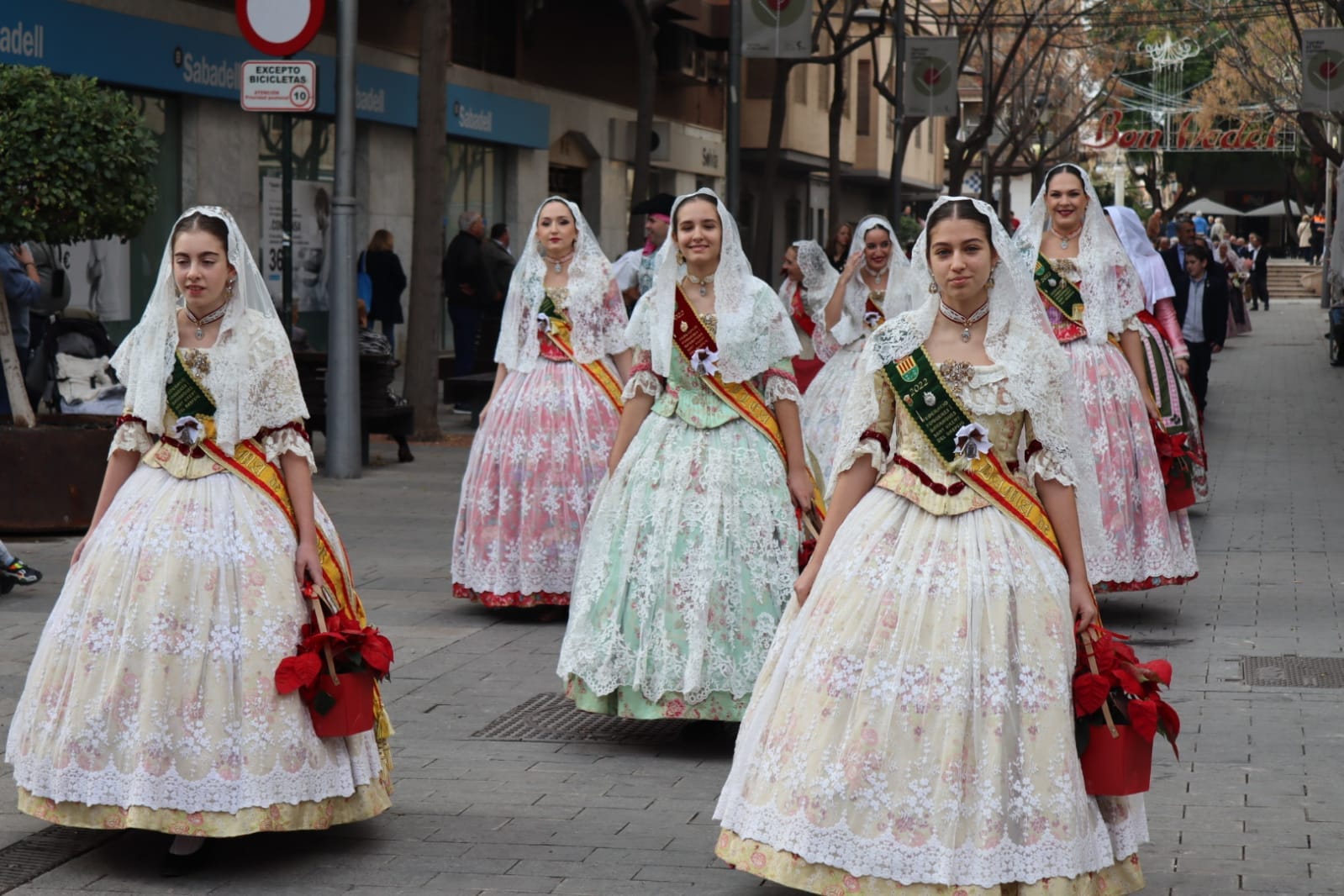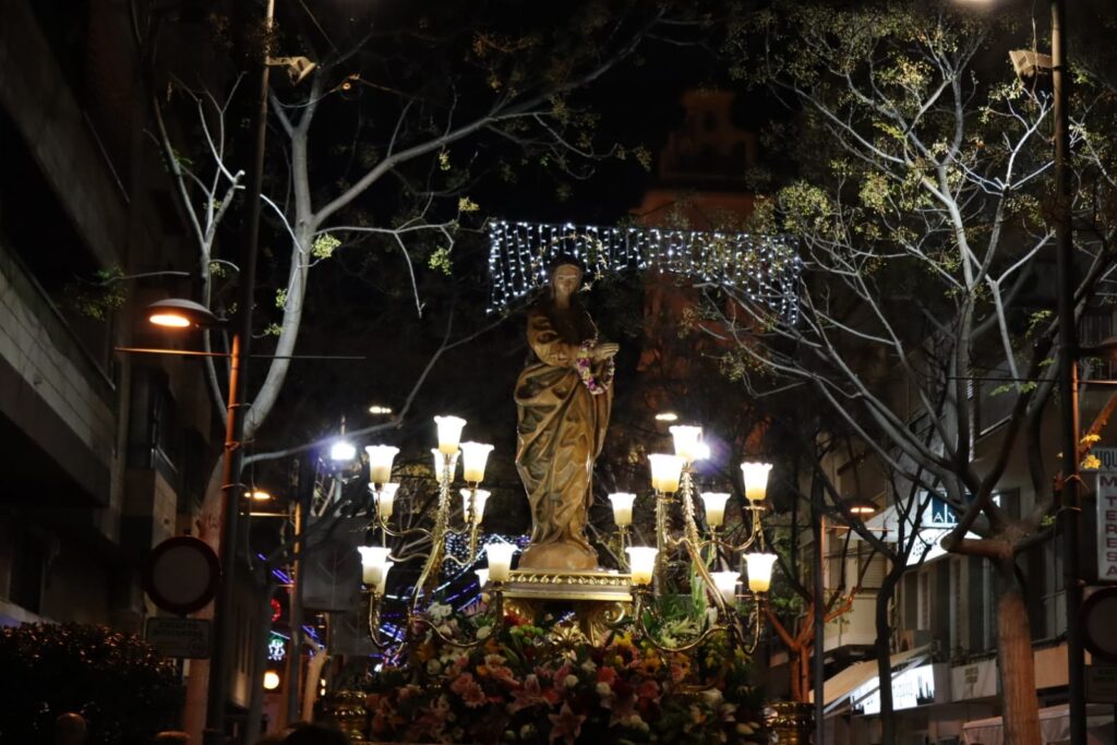 San Vicente acogió ayer la ofrenda y la procesión por la Virgen de la Inmaculada. El primero de los actos arrancó a las 11.30 desde la plaza de España hasta la inmaculada a través de la avenida de la Libertad. Posteriormente se celebró una misa y para culminar la mañana, se lanzó una mascletà en el solar junto a la iglesia.