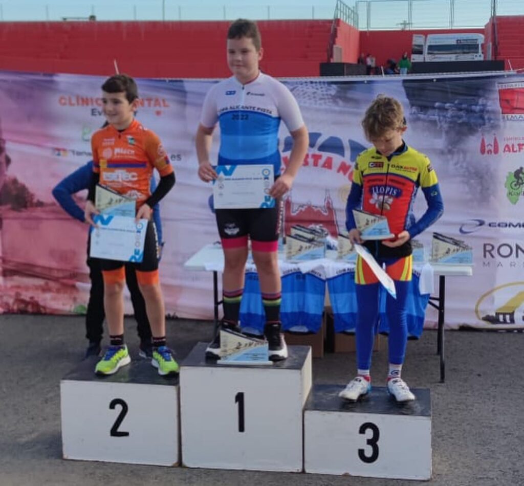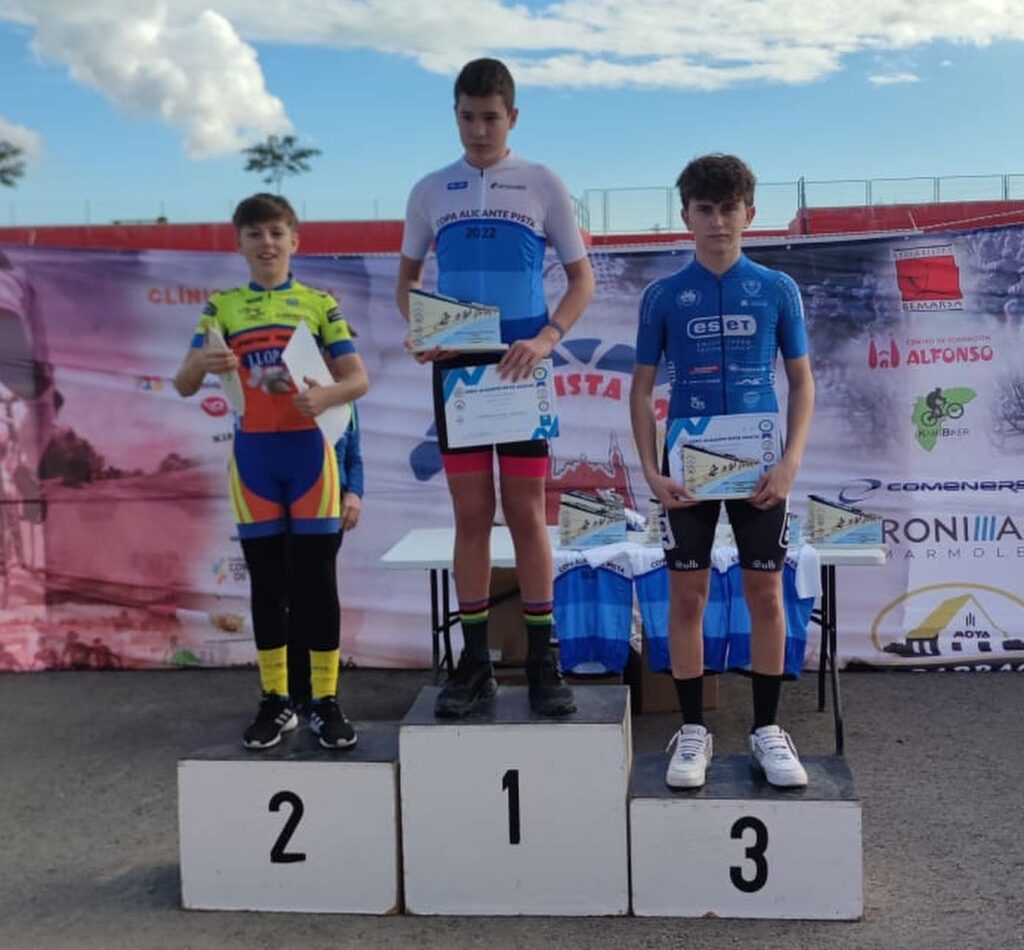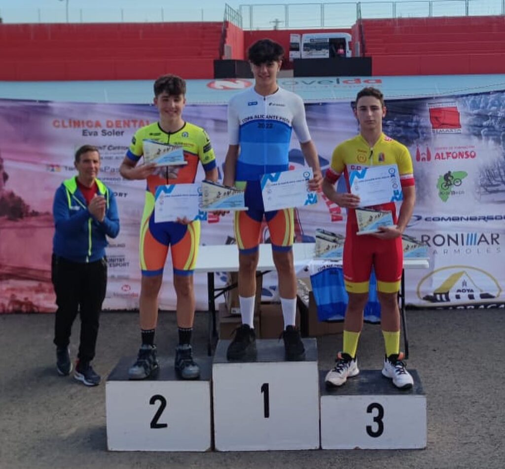 Por otro lado en Novelda finalizó la Copa Alicante de pista donde nuestros ciclistas destacaron en todas las categorías. En la clasificación general obtuvimos las medallas de Eugenif Melnikov, Lucas Campillo, Candela Cazorla, Óscar Orts, Alejandro Callado y Oleg Melnikov.