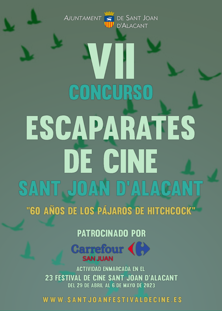 Un año más tendrá lugar el VII Concurso de Escaparates de Cine Sant Joan d’Alacant patrocinado por Carrefour San Juan. La séptima edición, convocada por la Concejalía de Cultura del Ayuntamiento de Sant Joan d’Alacant, promueve la participación de los comercios de proximidad para recrear un ambiente cinematográfico junto al #FCSJ2023