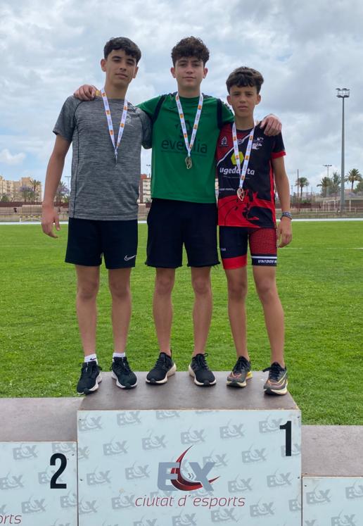 Este sábado han tenido lugar en la pista de atletismo “Manolo Jaén” de Elche los Campeonatos Provinciales de las categorías sub16, sub18 y sub20 donde tuvieron destacada participación los atletas del Club Atletismo San Vicente. Por la mañana fue el turno de los sub16 donde el atleta Marc Bermejo quedó campeón provincial de la prueba 1500 obstáculos. También participaron Nicolás Clemente (salto de altura), Quirino Lovaas (3º de su serie en 100ml), Nerea Marcos (5ª en salto de longitud) y Telma López (2ª de su serie en 300ml y 7ª en lanzamiento de peso).