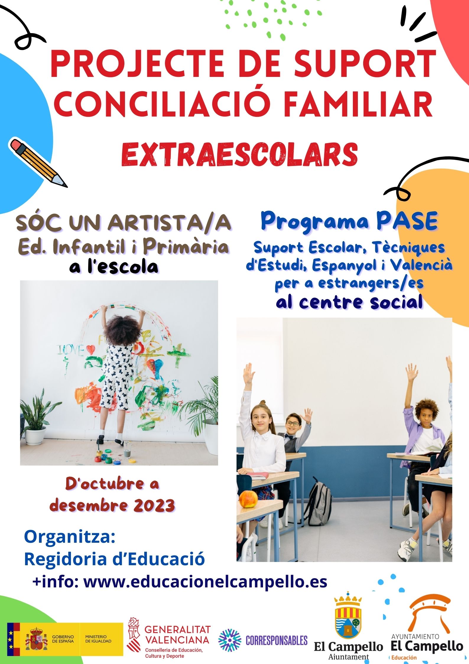 Igualmente, el alumnado procedente de otros países se ha incrementado en la población escolar, precisando de un apoyo extraescolar que facilite su integración en dicho sistema. La educación es una herramienta fundamental para el logro de la igualdad de oportunidades. Desde la Concejalía de Educación del Ayuntamiento de El Campello se ha apostado por un programa que apoya a los y las jóvenes que lo precisan con el objetivo general de mejorar su índice de éxito y asistencia escolar, mejorar la convivencia y prevenir las desigualdades educativas.