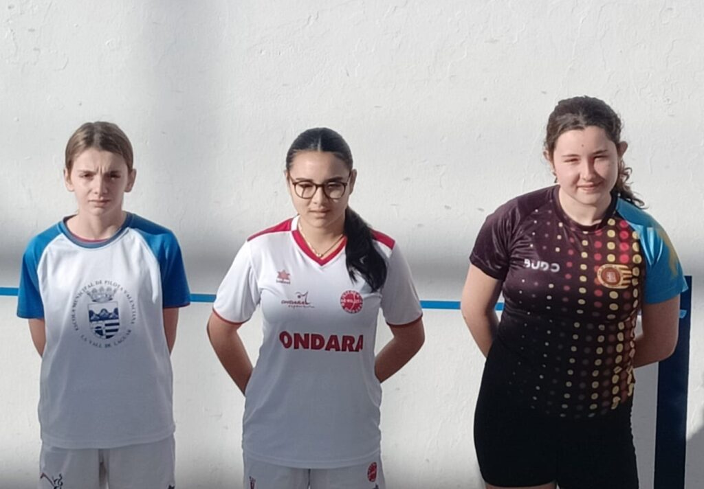 Tres de les xiquetes de l’Escola del club de Pilota del Campello, Berta, Anna i Gema, han fet un bon paper en la primera fase dels XLII Jocs Escolars de la Comunitat Valenciana, en la modalitat de «raspall» individual, que es van disputar a Dènia i Ondara, la jornada de diumenge.