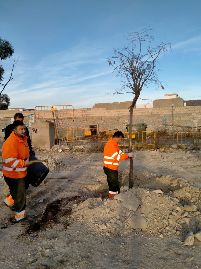 La jornada cuenta con la colaboración de la compañía FCC, que aporta una cuba de agua para el riego de ese día, y de Aguas de Alicante, que ya ha ejecutado la preinstalación de acometidas de agua que permita instalar el riego por goteo.