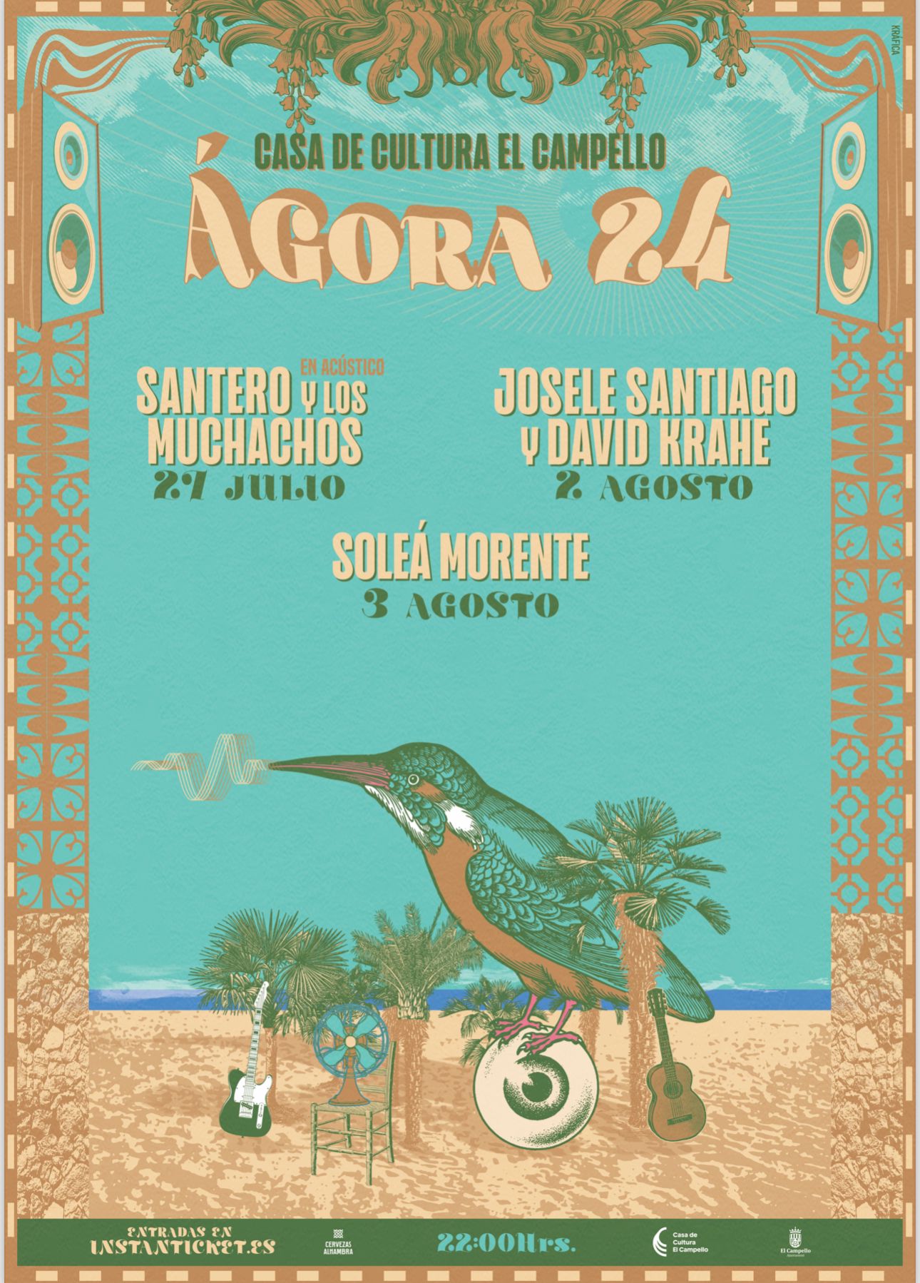 Este verano serán tres los conciertos que acogerá el Ágora de la Casa de la Cultura de El Campello, según anuncia la concejalía de Cultura que dirige Dorian Gomis. Serán los días 27 de julio y 2 y 3 de agosto, todos ellos a partir de las 22:00 horas, con aforo limitado. Las entradas se pueden adquirir ya, al precio de 8 euros, en la plataforma “Instanticket”.