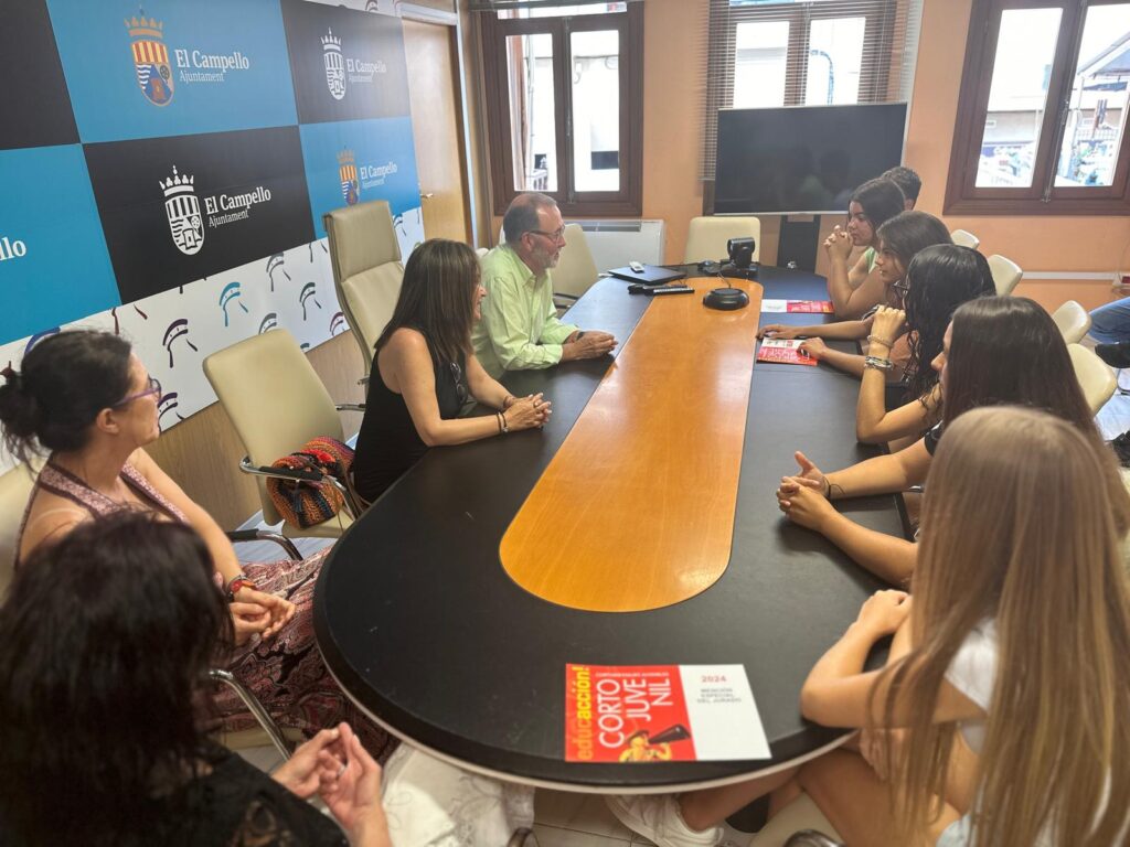 Los alumnos y alumnas del instituto Enric Valor premiados este año en el concurso de cortometrajes escolares del Festival Internacional de Cine de Alicante, “Educacción”, han visitado hoy el Ayuntamiento de El Campello acompañados de la educadora que dirigió sus trabajos, Rosabel Torregrosa, la directora del centro, Asunción Gómez, y familiares.