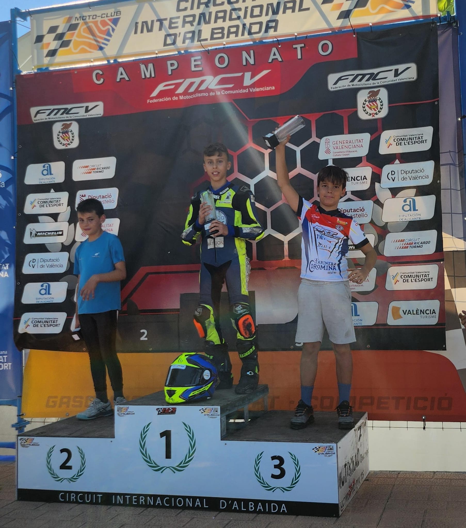 El joven piloto de San Vicente del Raspeig, Sergio Ceba, sigue demostrando su talento en el Campeonato Valenciano de Minivelocidad. Ayer, en el circuito de Albaida, disputó la penúltima carrera de la temporada y logró imponerse con autoridad en las dos mangas, obteniendo una valiosa victoria en ambas.