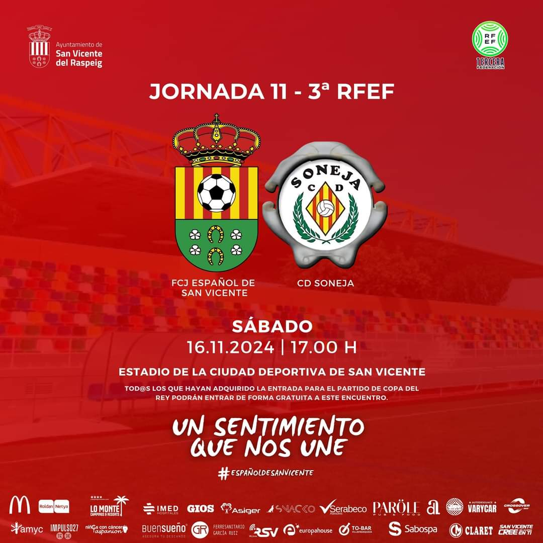 El rival, el Soneja, llega en un buen momento, con tres victorias consecutivas antes de la interrupción de la liga, que lo colocaron en puestos de play-off de ascenso. Pese al desafío que representa el buen momento del equipo castellonense, los precedentes favorecen al FCJ Español, que ganó ambos encuentros de la temporada pasada bajo la dirección de José Mas, con un claro 4-0 en San Vicente y un 0-1 en la vuelta.