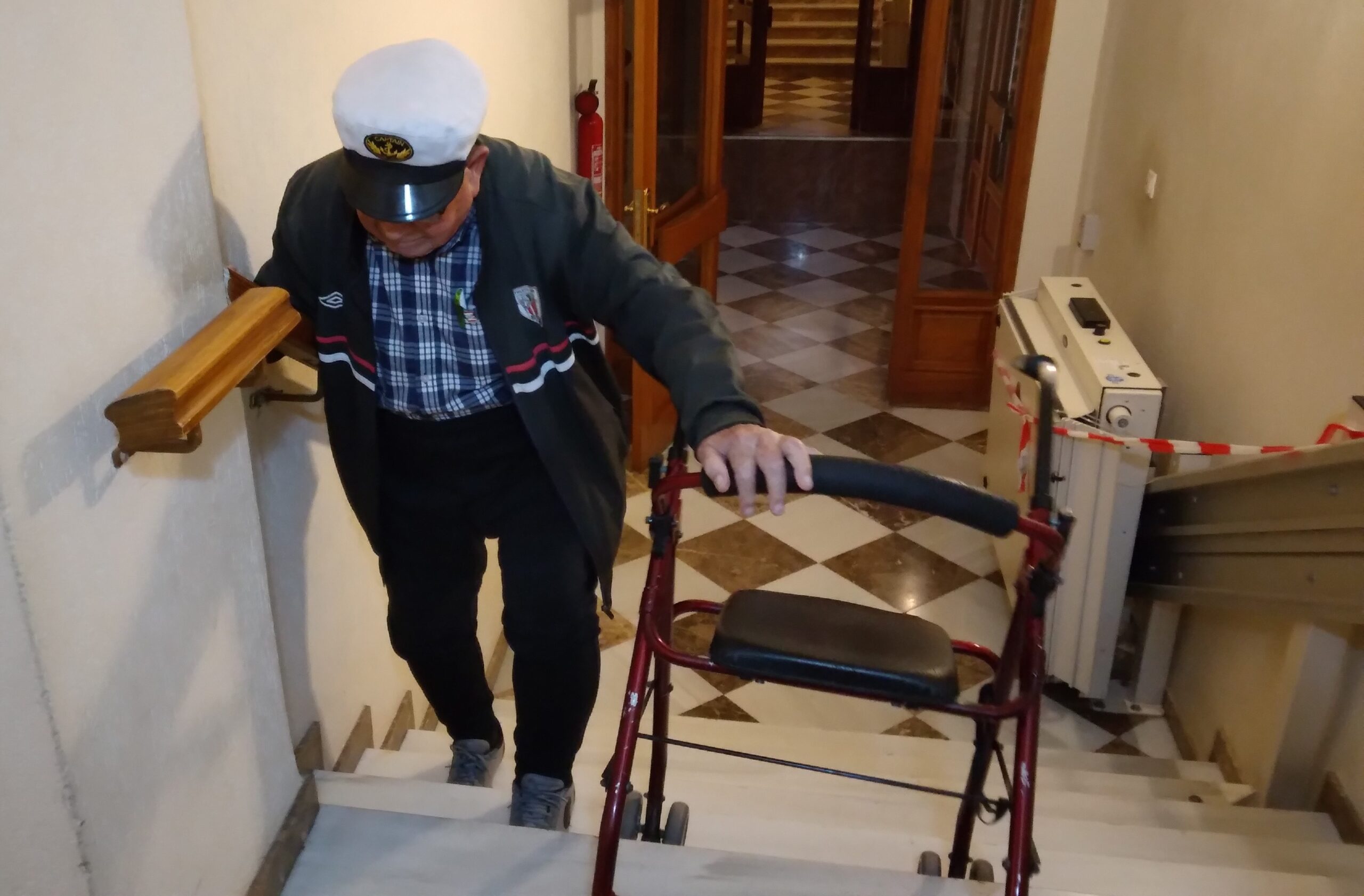 La senzilla rutina d’accedir a l’ascensor comunitari, que per a qualsevol mortal no significa cap esforç, es converteix en una odissea per a Rafael Galvañ qui, als seus més de 99 anys (juliol 1925), s’ha d’enfrontar a una perillosa ‘escalada’ cada vegada que vol fer el simple exercici d’eixir al carrer o tornar a sa casa.