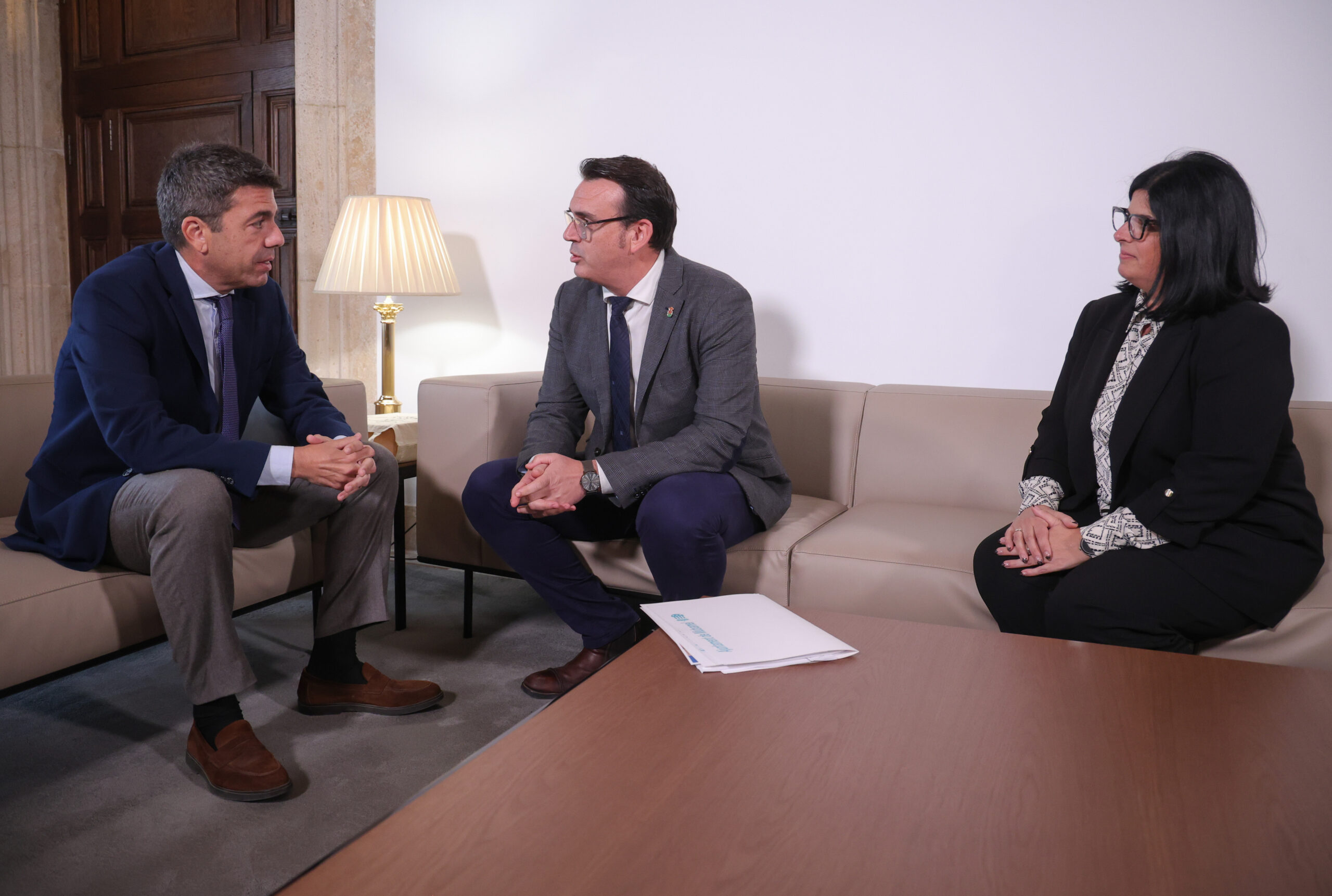 El president de la Generalitat, Carlos Mazón, ha mantenido un encuentro de trabajo con el alcalde de Mutxamel, Rafael García, en la que se han abordado distintos asuntos de interés para el municipio alicantino en materia sanitaria, educativa y cultural. El alcalde de Mutxamel se ha trasladado a Valencia al Palau de la Generalitat junto a los concejala de cultura, educación y fiestas.