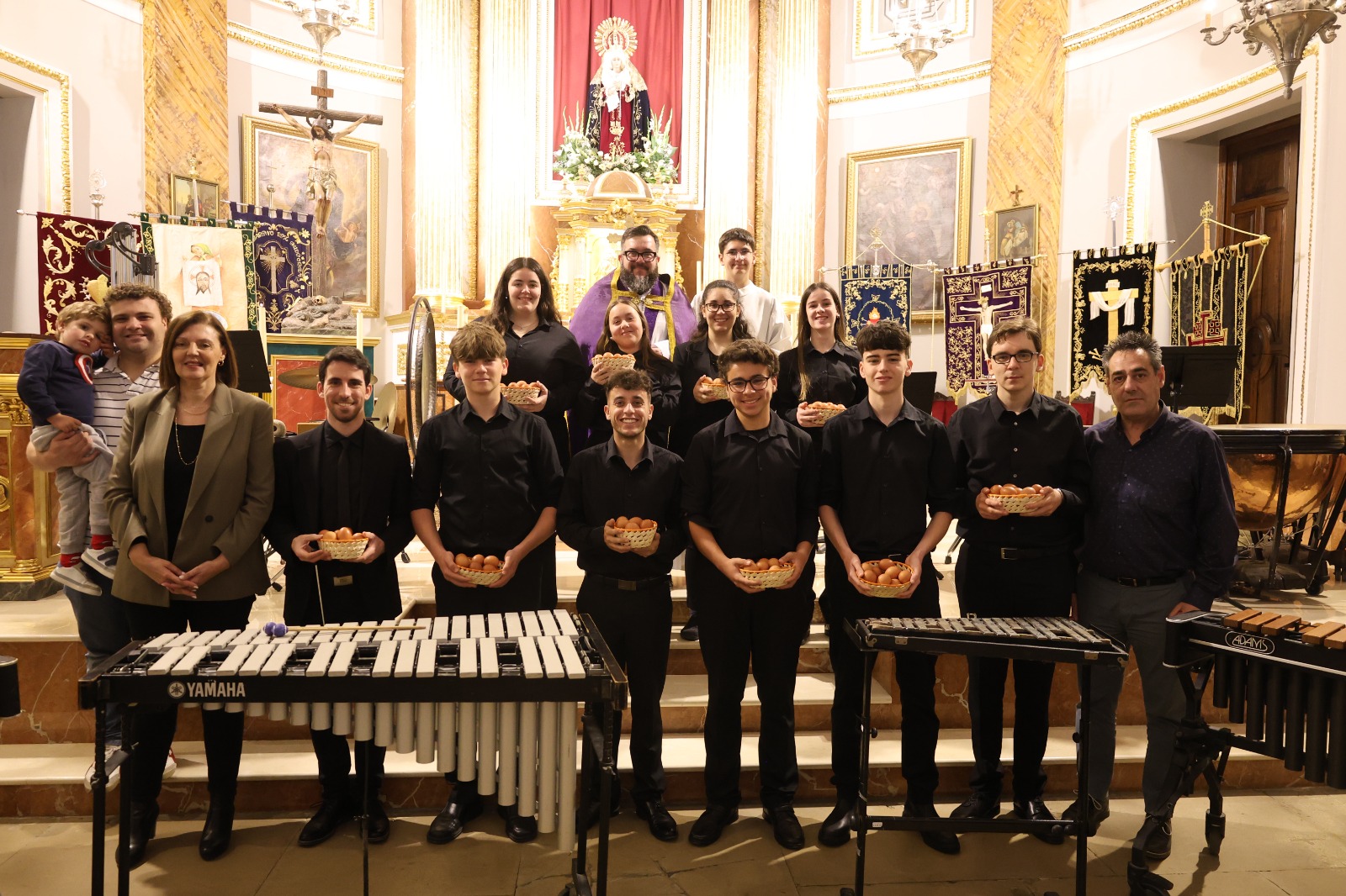 El sábado 5 de abril, tras la celebración de la Eucaristía, el templo se llenó de ritmo con el concierto del grupo de percusión de la Sociedad Musical La Paz. Con una sonoridad envolvente y una puesta en escena sobria, los músicos ofrecieron una lectura introspectiva y contemporánea de los Dolores de María, en lo que fue la primera de las siete miradas musicales del proyecto.