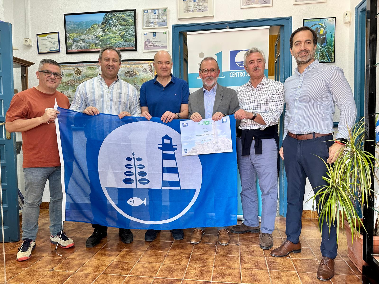 El galardón, acompañado del correspondiente título de excelencia en los servicios que presta, llegó ayer a la sede del Instituto en la calle Santa Teresa, hasta donde se desplazaron el alcalde, Juanjo Berenguer; el concejal de Playas, Rafa Galvañ, y el edil de Medio Ambiente, Marcos Martínez, acompañados del técnico municipal de Playas, Víctor Manuel Baeza.
