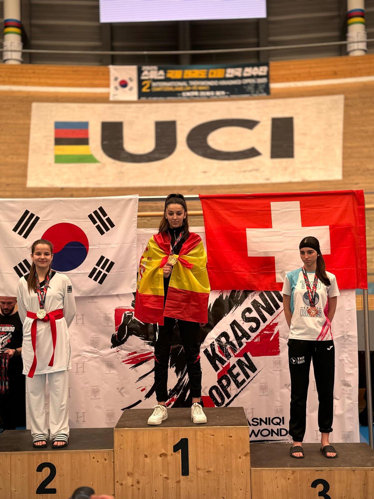La joven taekwondista sanvicentera Itziar García Godoy ha vuelto a brillar en el panorama internacional, esta vez proclamándose campeona del Open de Krasniqui en Suiza, celebrado este fin de semana. Con tan solo 14 años, Itziar logró alzarse con el oro en la categoría júnior de -49 kg, consolidando así su proyección como una de las mayores promesas del taekwondo español.
