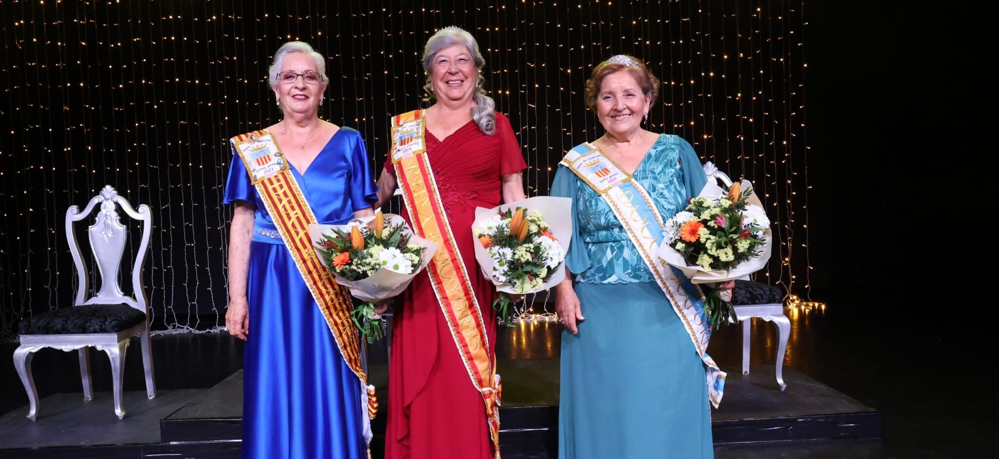 Durante el acto se proclamó oficialmente a las tres mujeres que representarán a las personas mayores del municipio durante el próximo año: Nico Cañizares Antillaque como Reina de los Mayores 2025, acompañada por Mari Ángeles Parra Jiménez y Toñi Sánchez Leal como Damas de Honor. Las tres protagonistas han sido renovadas en sus cargos, que ya ostentaban desde el pasado año, reconociendo así su dedicación y su papel como embajadoras del colectivo de personas mayores en Sant Joan.
