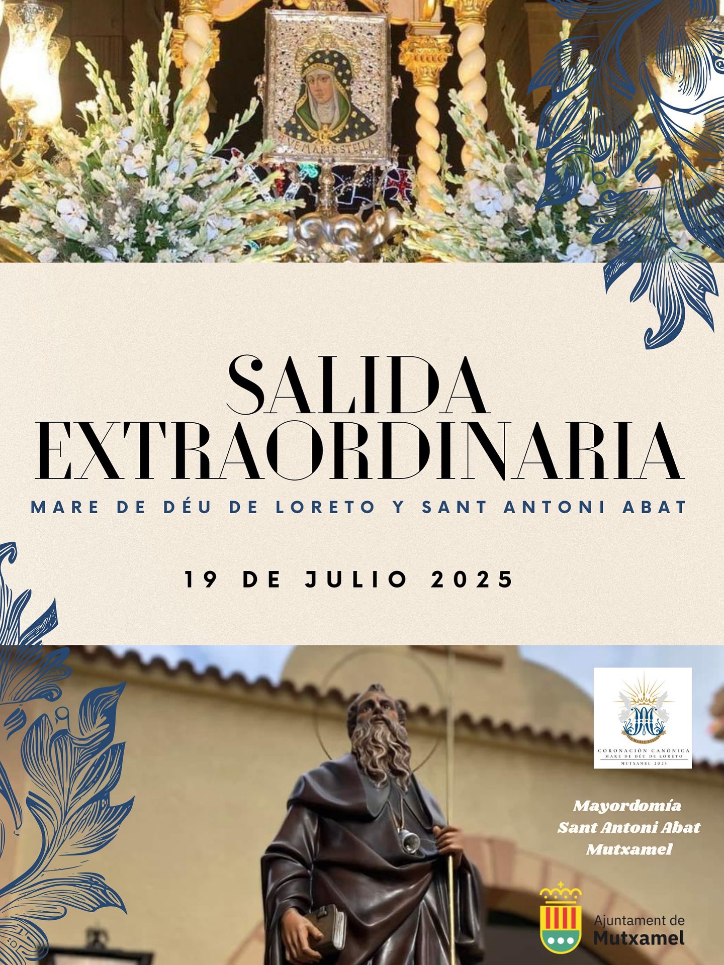 Mutxamel vivirá este sábado 19 de julio una jornada muy especial con la salida extraordinaria de la Mare de Déu de Loreto y Sant Antoni Abat, con motivo del Año de la Coronación Canónica de la patrona.
