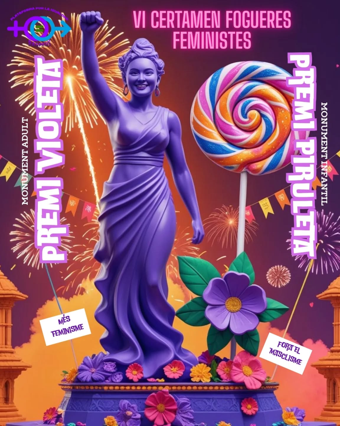 La Plataforma por la Igualdad Raspeig, asociación feminista de San Vicente del Raspeig, ha celebrado por sexto año consecutivo la entrega de sus ya consolidados Premios Violeta y Piruleta, que reconocen la presencia de una perspectiva feminista en los monumentos artísticos de las distintas hogueras del municipio.