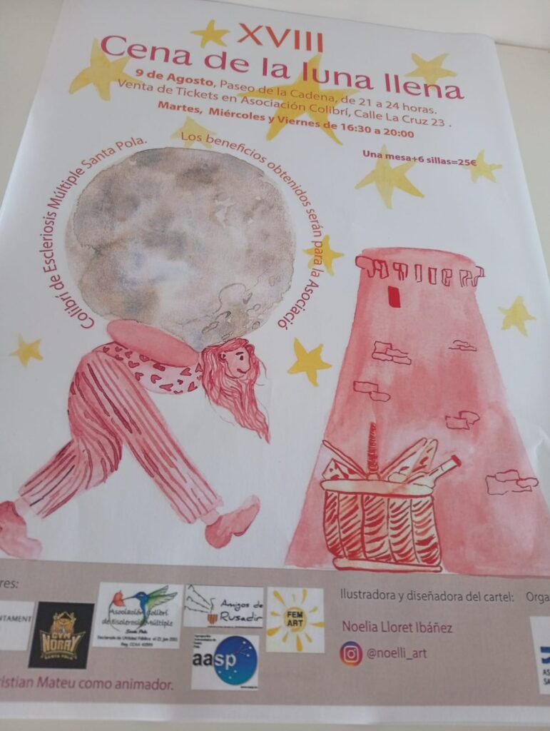 El compromiso social del colectivo se reflejó el 9 de agosto en la ya tradicional Cena de la Luna Llena de Santa Pola, un evento multitudinario cuyos beneficios se destinan este año a la Asociación de Esclerosis Múltiple. Amigos de Rusadir volvió a aportar su música y su presencia en una cita que reúne cada verano a miles de personas en el Paseo de las Calas de Santa Pola del Este, en una experiencia solidaria y festiva reconocida desde hace más de dos décadas.