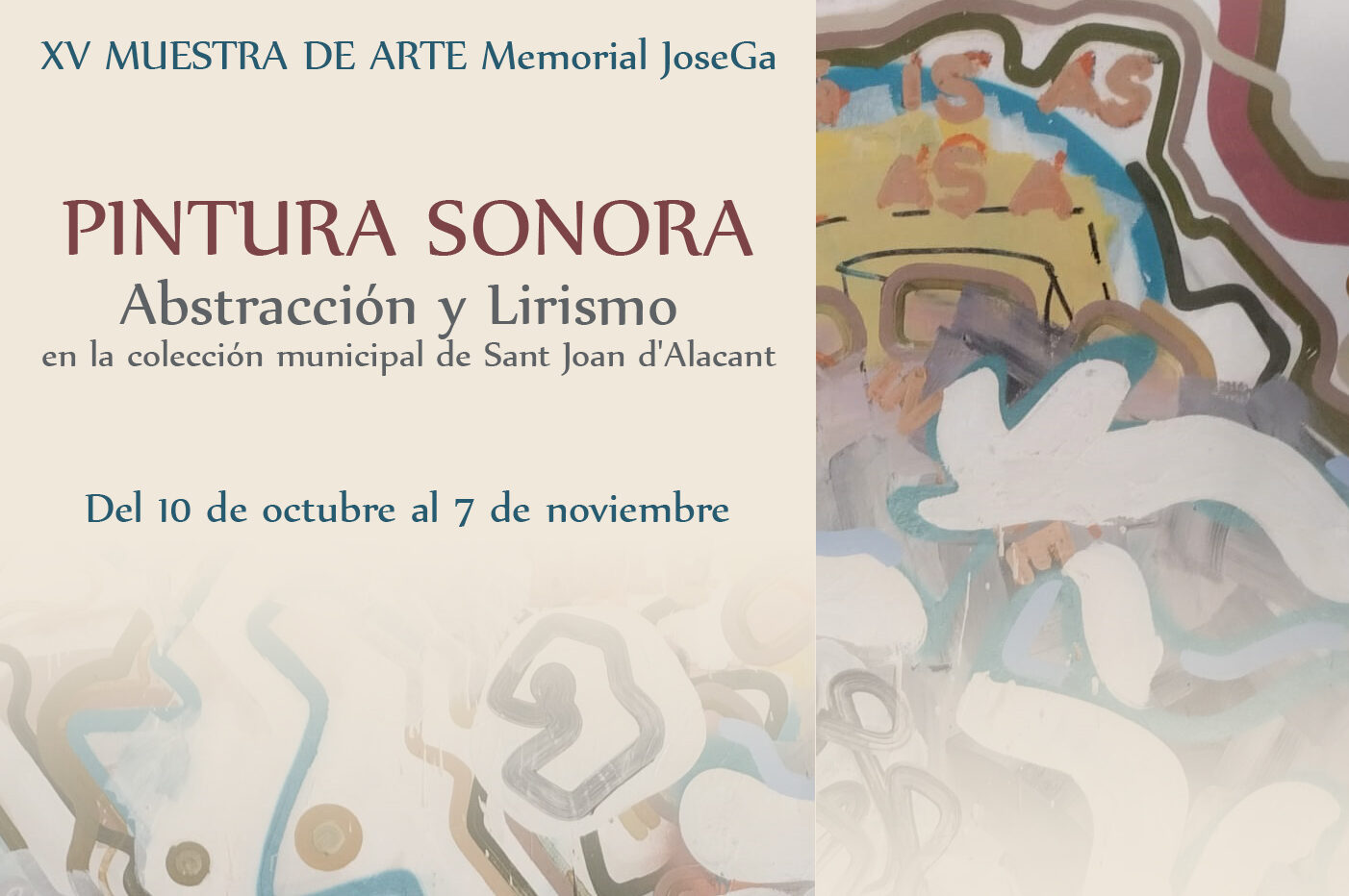 La Sociedad Musical La Paz vuelve con la décimo quinta edición de la Muestra de Arte ‘Memorial JoseGa’ paralela al ciclo de música antigua ‘Sancti Iohannis’ y que este año tendrá lugar en la sala de exposiciones ‘Roberto Mira’ del Archivo-Biblioteca ‘Amelia Asensi’ con el título ‘Pintura Sonora: Abstracción y lirismo en la colección municipal de Sant Joan d’Alacant’.