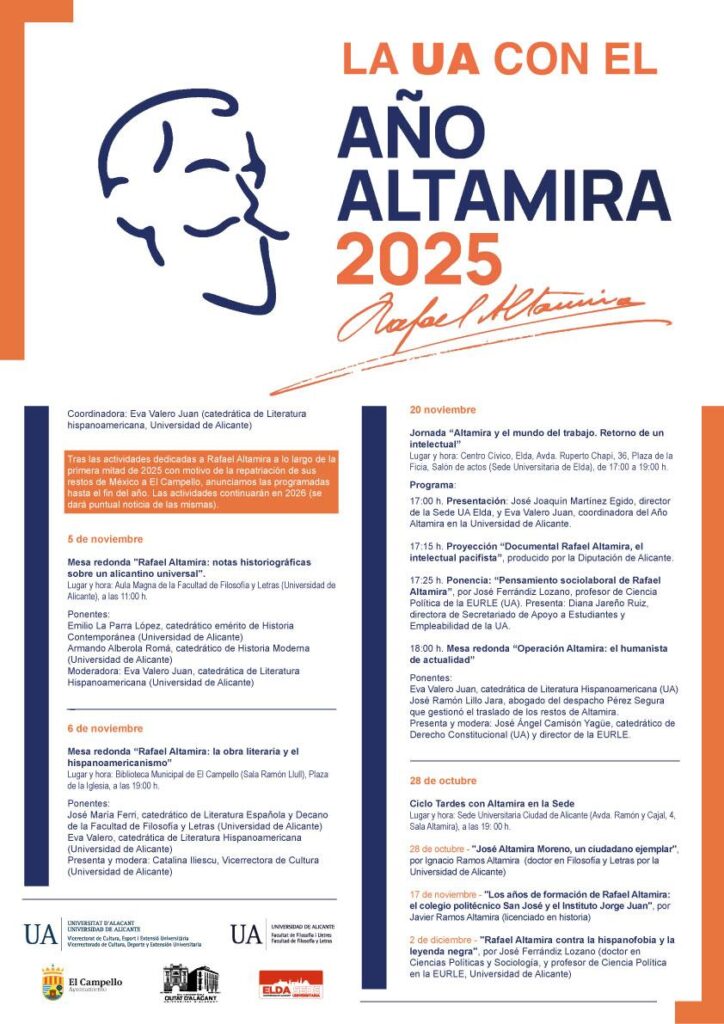 Implicación absoluta de la Universidad de Alicante con el “Año Altamira” que promueve el Ayuntamiento de El Campello para poner el valor el legado del jurista, humanista y literato de proyección internacional que el pasado febrero fue inhumado en el Cementerio Municipal tras un largo proceso de repatriación desde la capital de México, donde estaba enterrado junto a su esposa, Pilar Redondo.