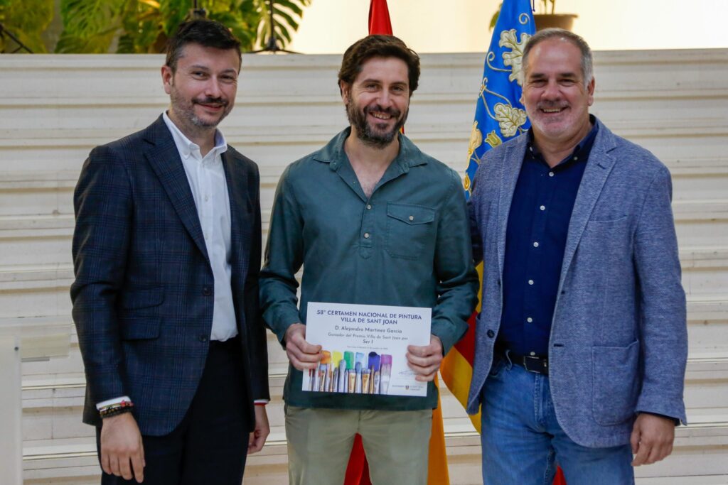 El Premio Villa de Sant Joan, dotado con 3.000 euros, recayó en Alejandro Martínez García por ‘Ser I’. El IV Premio Jove Villa de Sant Joan, con una dotación de 1.000 euros, fue otorgado a Sergio Rocafort Giménez por ‘Azud de Sant Joan’. Por su parte, el Premio ‘Senderos del Arte’, impulsado por la Fundación Cultural La Mácula del Tiempo y también dotado con 1.000 euros, fue para Antonio Pastor Gea por su obra ‘Huertas del río Monnegre’.