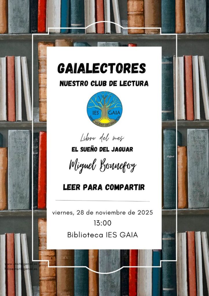 Desde el IES Gaia animamos a todas las personas interesadas a participar, tanto si ya han leído el libro como si desean acercarse por primera vez a este tipo de actividades. No es necesario inscribirse previamente: ¡solo ganas de leer, conversar y disfrutar de la literatura en buena compañía!