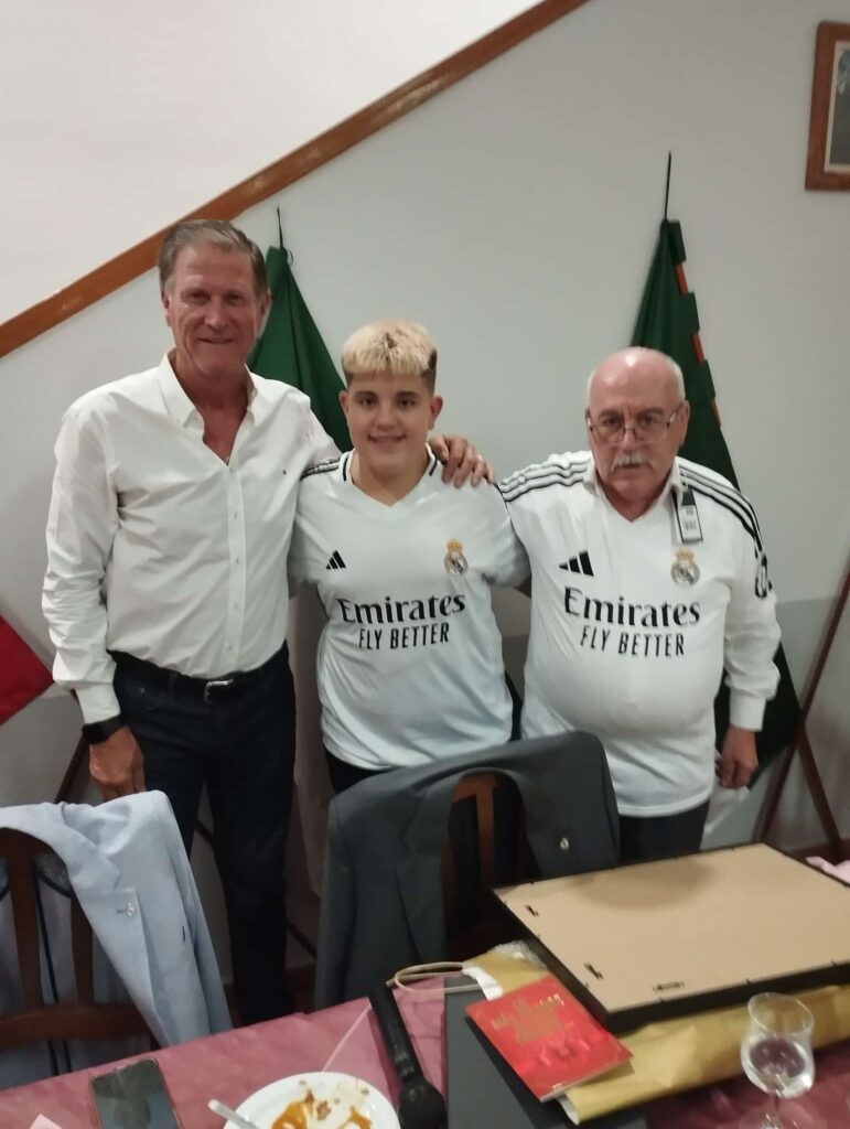 Adjunto un foto que significa mucho en lo personal, en lo emocional, y en el madridismo, que es la que hicimos en el Aniversario 36 del año 2024, donde me acompañan FRANCISCO BONET SERRANO, y MARCOS TORNERO LLINARES, el niño y gran madridista, que lucha con una cruel enfermedad, pero que el valor de su lucha personal y de su Familia, nos ha dado un ejemplo de solidaridad y de compromiso para andar por la vida.