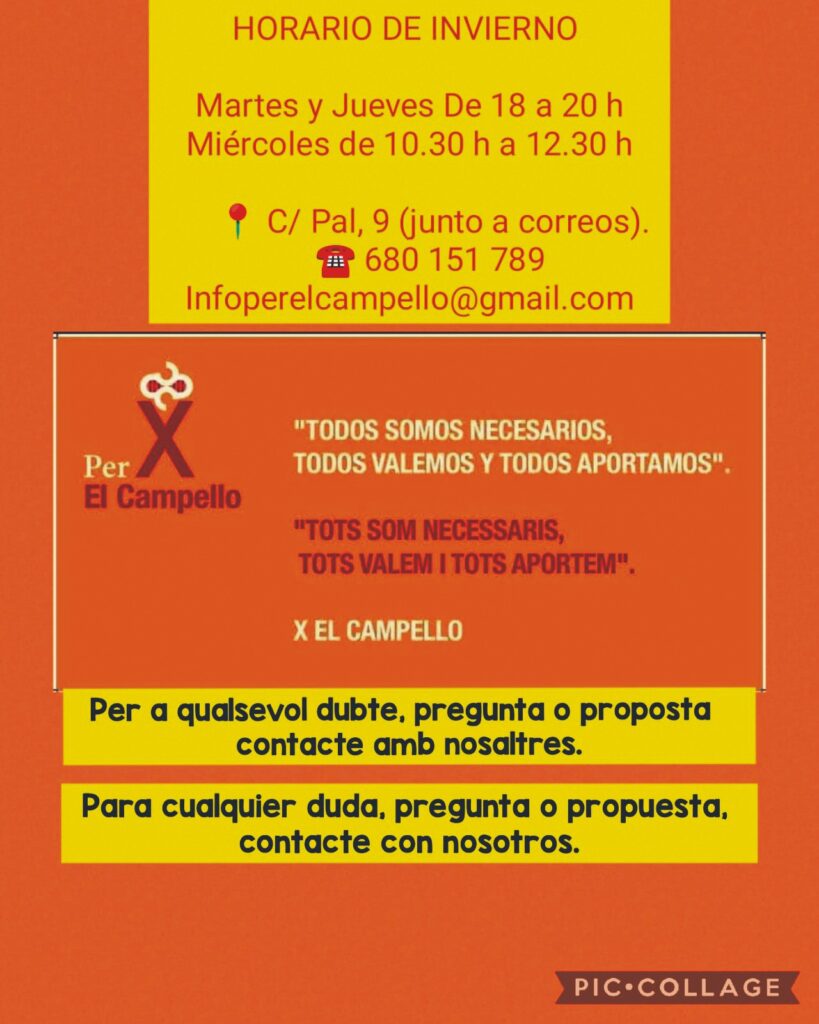 Per El Campello ha emitido un recordatorio a todos los vecinos y vecinas del municipio informando de que su sede continúa abierta para atender cualquier duda, pregunta o inquietud relacionada con el estado del municipio. La agrupación insiste en su voluntad de mantener un contacto directo con la ciudadanía y de escuchar propuestas que puedan contribuir a mejorar El Campello.